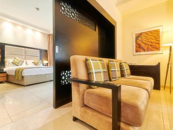 Сервис - огонь🔥,а точнее"горите туристы синем пламенем"😝: дозаказывать нужно было всё:звонила на ресепшн,заказывала халаты,воду,полотенца.Всё приносили,но не всё с первого раза.Сам номер двухкомнатный, примерно 45-50м2.