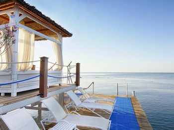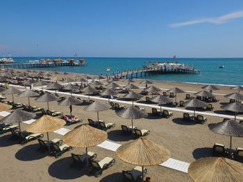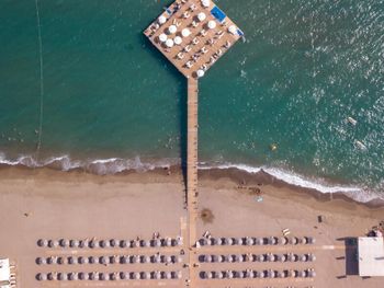 Пляж песочный, в море тоже песочек. Есть небольшая прослойка гальки. На пляже есть небольшой пирс с лежаками, своим душем и спуском в воду. Даже там ловил интернет с отеля. Лежаков много, нам всегда удавалось найти место и у бассейна, и у моря. На пляже есть бар, в котором готовят вкусные безалкогольные коктейли. Отдыхающим у бассейна регулярно подвозят холодные напитки. Каждый день в бассейне проводят фитнес-тренировки, но, к сожалению, нет никакой тени, а проходят они в самое жаркое время - в районе 11-12 часов.