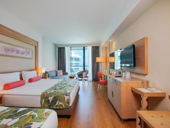 Понравилось очень, что дали номер категорией выше чем я бронировал, приятный сюрприз. Наличие шикарного олимпийского бассейна. Хорошее питание, многообразие блюд и локаций. Хороший пляж и пирс. Уверенный и быстрый интернет. Отель сдан в 2009 году, состояние номеров отличное, явно была реновация.