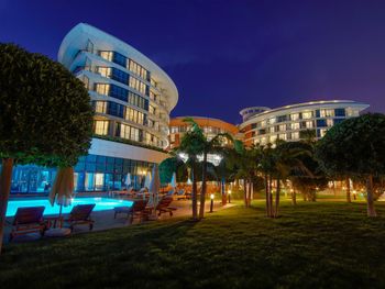 Курортный отель Baia Lara занимает обширную территорию. К услугам гостей собственный песчаный пляж, деревянная пристань, большие открытые бассейны, аквапарк с 9 водными горками, крытый бассейн с подогревом, спа-центр и спортивные сооружения.