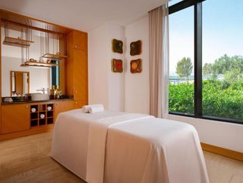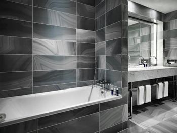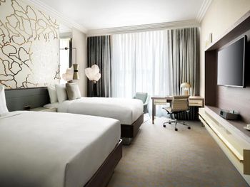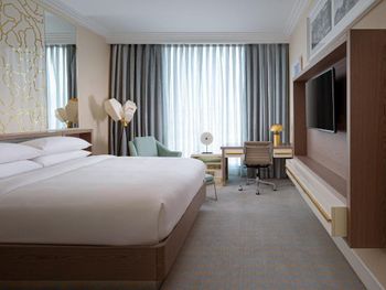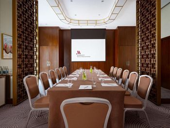 Совсем не тянет на Марриотт, очень много минусов было, потеряли время при заселении, меняли 2 номера, на это ушло много времени. Не работает розетка в ванной, зеркало сломанное, мало света в ванной комнате, напор воды в душе очень слабый, грязные окна во всех номерах, грязные полы, пятна на коврах, постоянно нужно просить о чём - то по 2 раза, на этажах очень длинные коридоры с одним лифтом. В номерах по одному халату, второй халат и зуб щётки дают только по запросу.