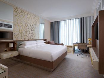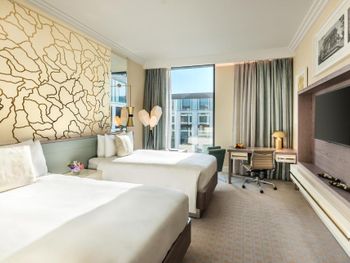 В отеле 812 номеров, в большинстве которых не открываются окна и общее кондиционирование соответсвенно. На этажах длинные коридоры, сложно найти номер, не хватает дополнительной навигации. На 2м этаже во всех номерах для курящих присутствует неприятный запах химического ароматизатора, считаю, что его распыляют слишком много. Возле отеля в огромном количестве стоят таксисты, они же - мошенники, не безопасно, когда выходишь. До центра пешком идти долго, считаю, что такой уважаемый и известный отель в будущем мог бы организовать комплиментарный трансфер например до старого города и обратно. Или решить вопрос с таксистами, которые обманывают туристов.