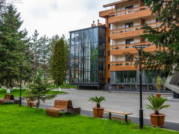 Большая территория по сравнению с другими отелями в бакуриани. Ничего особенного. По крайней мере лучшего нет в бакуриани.