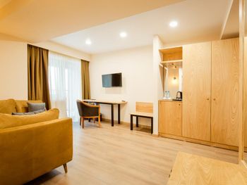 Почувствуйте себя знаменитостью благодаря великолепному сервису в Bakuriani InnBakuriani Inn — это отель, расположенный в городе Бакуриани. К услугам гостей общий лаундж, терраса, ресторан и бар. В распоряжении гостей отеля с 5 звездами — бесплатный Wi-Fi, доставка еды и напитков и круглосуточная стойка регистрации. Гости могут воспользоваться оздоровительным и спа-центром с крытым бассейном, фитнес-центром и сауной, а также садом.