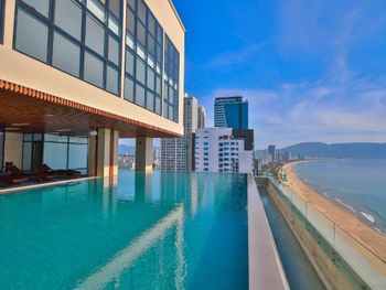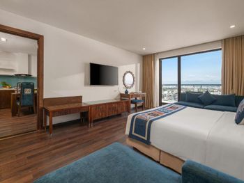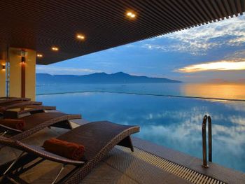 В целом хороший отель в Дананге. Заселили на 18 этаж. Вид на город, горы, взлетающие и приземляющиеся самолеты потрясающий. Панорамный бассейн на 21 этаже хорош. Завтраки разнообразные. Выбор блюд достаточно большой. Пляж через дорогу. На выходе из отеля дают пляжные полотенца. В пешей доступности большое разнообразие кафе, ресторанов, магазинов. АТМ тоже рядом. Можно недорого съездить на такси до парка с колесом обозрения и до мраморных гор.