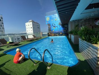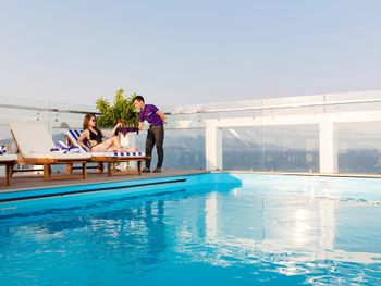 В отёле шёл ремонт фасада, бассейн был закрыт (хотя персонал говорил, что он открыт и можно пользоваться им), стекла ограждающие его были обляпаны краской и грязью, над бассейном были натянуты страховочные тросы для рабочих, красящих фасад отеля. Сам бассейн площадью 4*5 метров, ледяной!!!! И глубокий. Видимо сделано намерено, чтобы никого там не было, и там реально никого и не было. Вообще у отеля проблемы с водой, она так сильно хлорирована, что появляется раздражение на коже, вода ПАХНЕТ хлоркой, конкретно. Персонал не реагирует, так и надо.