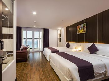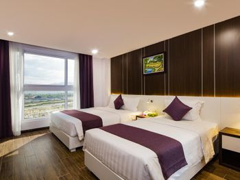 Понравилось местоположение отеля, рядом пляж 2 минуты от отеля (своего пляжа нет , но можно взять на пляже 2 шезлонга зонт и полотенца за 100 000 донгов на день , в любое время были свободные шезлонги ), рядом в пешеходной доступности большой выбор кафе, магазинов, массажных салонов. В номере было тихо. Чайник, фен, чай кофе и воду бесплатно каждый день приносили в номер.