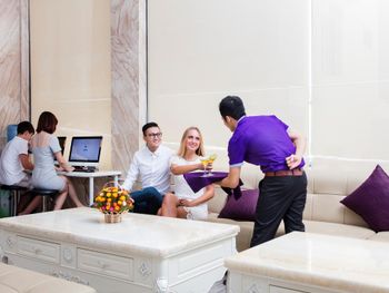 Персонал хорошо говорит на английском языке и чуть-чуть на русском. В отеле два лифта и услуги по упаковки багажа, размен валюты (курс чуть ниже, чем в городе), весы (бесплатно) для чемоданов. Хорошие разнообразные завтраки. Бассейн на 20 этаже. Просторный номер с балконом и огромной двухспальной кроватью. Наличие сейфа. Современная мебель и техника.