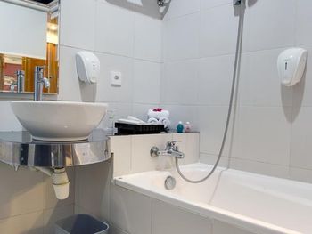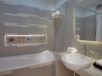 With plenty of natural light, the air-conditioned rooms feature a private balcony, wood furnishings and artwork. Guests have the convenience of a minibar and satellite TV, as well as free drinking water. En suite bathrooms come with either a shower or a bathtub.