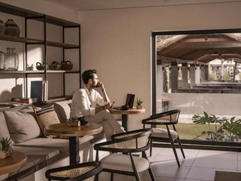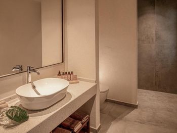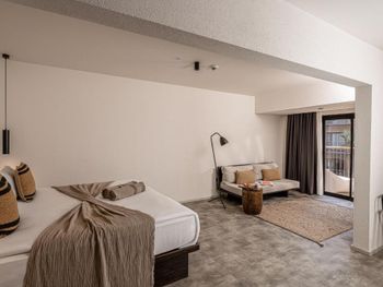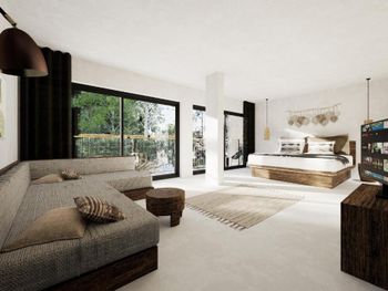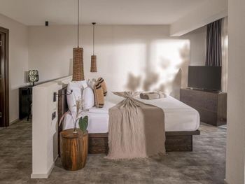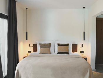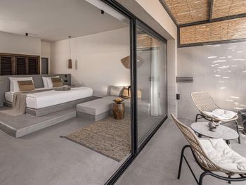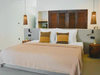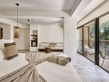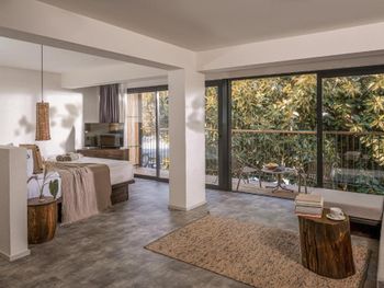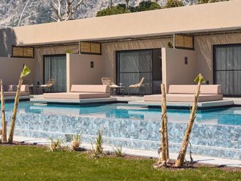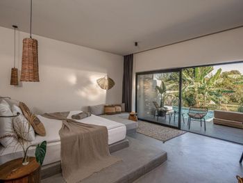 Отель очень эстетичный и уборка номера была безупречной. У нас был потрясающий номер с собственным бассейном, хотя вода не подогревается, поэтому ощущение, что вы ныряете в прорубь. Отель позиционирует себя, как отель для отдыха и достижения душевной гармонии, но при этом в соседнем отеле, уровнем ниже, долбит музыка с 9 утра до 23 часов так, что кровать подпрыгивает.