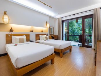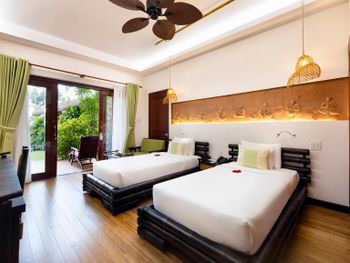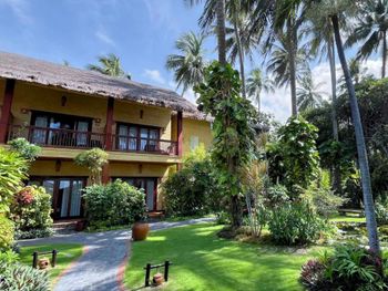 Отель утопает в зелени. территория не большая, но очень зеленая и ухоженная. как будто попадаешь в джунгли. на территории много прудиков и искусственных ручьев с разноцветными рыбами, которых можно кормить. есть два бассейна. одни для посещения всем, другой для отдыха без детей. завтраки стандартные из особенностей фо-бо и местные фрукты. персонал очень отзывчивый. говорят по английски и есть русскоговорящий менеджер на ресепшн. пляж насыпан чуть выше соседних отелей. отдыхали в семейном номере на 1 этаже -с выходом через террасу прям на территорию. (вечером на террасе были комарики - но не много и не критично). Пляжные полотенца прям в номере и их меняют вместе с основными. Очень понравился отель! Однозначно рекомендую.