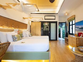 We booked one of the best options - a bungalow with beach view. Patio was amazing! But!... We arrived on a week day with a hope for a silence. To relax and chill. So, we chill on the patio and like out of the blue - noise and din from the beach! The hotel hosted a holiday/activity for a bunch of kids! It was terrible. All the day - not a sea sound and birds\' songs but children screams!.. Bamboo, are you serious?!... And on the next day - two workers came and without any questions and discomfiture started hammer-hitting action, mixed concrete - they fixed a trail. Awful! The room also "pleased" us - it was a strong sewerage smell from drains all over the room. We constantly ventilated it. For info - room 107. Мы взяли один из самых хороших номеров: бунгало с видом на пляж. Патио (балкон) просто великолепное! Но!.. Мы приехали среди недели в надежде на тишину. Расслабиться, отдохнуть. И вот лежим мы на диванчиках на балконе, и тут шум и гам с пляжа! Отель устроил какой-то праздник для целой толпы детей! Это было ужасно. Целый день не звуки моря, пение птиц, а ор и крик толпы детей!.. Bamboo, вы серьёзно?!.. А на следующий день пришли рабочие и ничуть не стесняясь нас начали стучать молотками, замешивать цемент - дорожку делали. Кошмар! Сам номер тоже "порадовал": кошмарно воняло канализацией из труб на весь номер. Прям постоянно проветривали. Если что это был 107 номер.