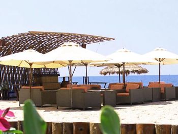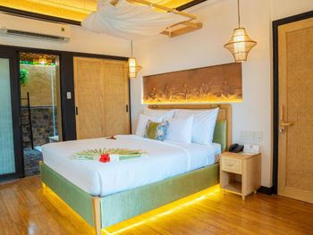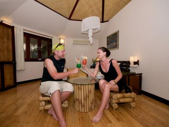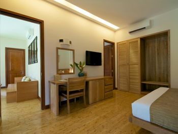 We booked one of the best options - a bungalow with beach view. Patio was amazing! But!... We arrived on a week day with a hope for a silence. To relax and chill. So, we chill on the patio and like out of the blue - noise and din from the beach! The hotel hosted a holiday/activity for a bunch of kids! It was terrible. All the day - not a sea sound and birds\' songs but children screams!.. Bamboo, are you serious?!... And on the next day - two workers came and without any questions and discomfiture started hammer-hitting action, mixed concrete - they fixed a trail. Awful! The room also "pleased" us - it was a strong sewerage smell from drains all over the room. We constantly ventilated it. For info - room 107. Мы взяли один из самых хороших номеров: бунгало с видом на пляж. Патио (балкон) просто великолепное! Но!.. Мы приехали среди недели в надежде на тишину. Расслабиться, отдохнуть. И вот лежим мы на диванчиках на балконе, и тут шум и гам с пляжа! Отель устроил какой-то праздник для целой толпы детей! Это было ужасно. Целый день не звуки моря, пение птиц, а ор и крик толпы детей!.. Bamboo, вы серьёзно?!.. А на следующий день пришли рабочие и ничуть не стесняясь нас начали стучать молотками, замешивать цемент - дорожку делали. Кошмар! Сам номер тоже "порадовал": кошмарно воняло канализацией из труб на весь номер. Прям постоянно проветривали. Если что это был 107 номер.