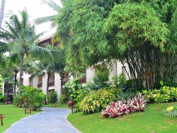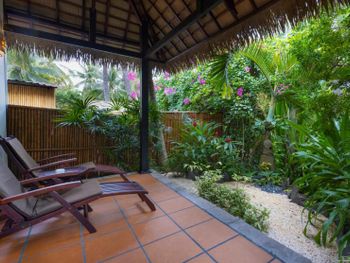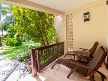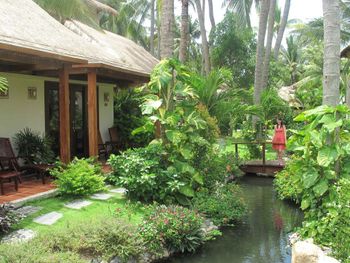 Отель утопает в зелени. территория не большая, но очень зеленая и ухоженная. как будто попадаешь в джунгли. на территории много прудиков и искусственных ручьев с разноцветными рыбами, которых можно кормить. есть два бассейна. одни для посещения всем, другой для отдыха без детей. завтраки стандартные из особенностей фо-бо и местные фрукты. персонал очень отзывчивый. говорят по английски и есть русскоговорящий менеджер на ресепшн. пляж насыпан чуть выше соседних отелей. отдыхали в семейном номере на 1 этаже -с выходом через террасу прям на территорию. (вечером на террасе были комарики - но не много и не критично). Пляжные полотенца прям в номере и их меняют вместе с основными. Очень понравился отель! Однозначно рекомендую.