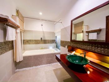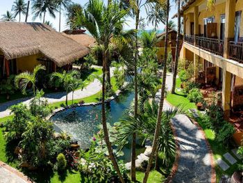 Отличный отель-сад на берегу моря. Приехала сюда по рекомендации, отель очень чистый, красивый, удобный. Есть все необходимое на территории. Особенно хочу отметить персонал, очень дружелюбный, гостеприимный, готовый помочь по любому вопросу. Завтраки хорошие, есть и европейские и азиатские блюда, готовят омлет и фо на завтрак. Пляж красивый, были волны на море, но сейчас такой сезон. Красивая территория, настоящие тропический сад, очень ухоженный.