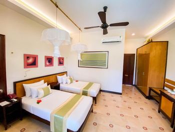 Изумительный отель! Отдыхала в апреле 2025 г. Номер просторный уютный, имелся шикарный балкон со столиком и креслами, а также дизайнерская сушилка для вещей. Кондиционер работает бесшумно, охлаждает комнату отлично. Удобная кровать с белоснежным постельным бельем, удобные подушки и большое одеяло. Полотенца меняют каждый день. Ежедневная качественная уборка номеров. Каждый день вместе с уборкой добавляют чайные наборы и воду. Скорость Wi Fi достаточна для работы на удаленке. При заселении берут или залог 200$, или паспорт, при выселении возвращают. Замечательный завтрак по системе шведский стол, огромный выбор как азиатских, так и европейских блюд. Большой выбор: овощных салатов, вкуснейших разнообразных гарниров, тушенное мясо, курица, китайские/вьетнамские паровые пампушки из рисовой муки с разнообразными начинками, знаменитый суп Фо бо (с говядиной, морепродуктами). По желанию можно заказать или омлет с ветчиной, или яичницу глазунью, которые готовят при тебе. На завтрак всегда несколько видов фруктов плюс арбуз. Соки, знаменитый вьетнамский кофе, молоко, чай, большой выбор выпечки, джемов, сливочное масло, паштет, хлопья, мюсли. Персонал в ресторане работает на 5+, ресторан расположен на берегу моря. На территории два бассейна, отель на первой береговой линии со своим ухоженным пляжем с белым песком и с большим количеством шезлонгов с зонтиками. Море теплое, чистое, но поплавать не всегда получалось из-за медуз или сильных волн. Путь на пляж проходит по большой, красивой, ухоженной территории отеля с запрудами/речушками с рыбками. Отличный отель в самом центре поселка! В шаговой доступности большое количество кафе, аптек, магазинов, массажных салонов, продажа фруктов – с очень приятными ценами. Но, самое главное – это персонал! Всегда доброжелательные, улыбчивые, готовые прийти на помощь. У меня в Макбуке заклинило клавишу и на ресепшене мне помогли – дали мышку в аренду. За это еще раз: огромное спасибо! Отдых прошел великолепно!