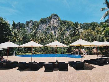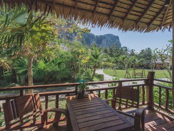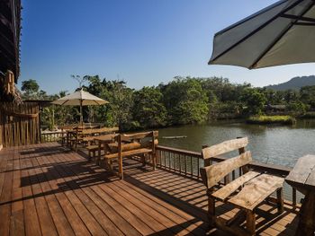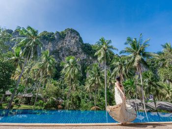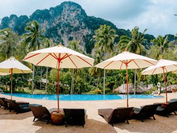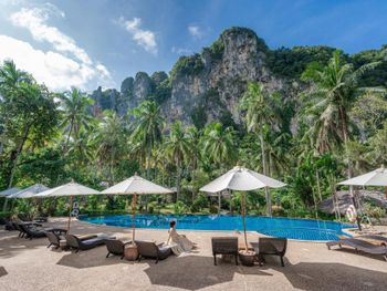 Мы в этом отеле останавливались уже третий раз. Просто рай на земле. Домики и бассейн раскиданы в ухоженных джунглях у подножия карстовой скалы. Белки бегают, птички поют...