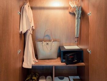 в номерах есть халаты, зонтики, циновка, пляжные полотенца