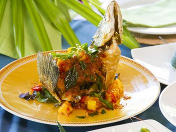 Вкусная но острая кухня.Отдельные домики и прекрасный вид из них.