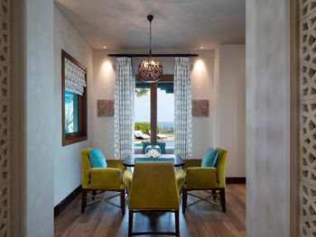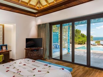 Размер виллы, учтивость персонала, уборка виллы выше всяких похвал, большой теплый личный бассейн, красивый вид, вкусный завтрак