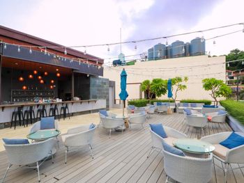 Завтрак отличный, интерьер лобби современный, номер де-люкс хороший, но супер вида из него не ждите (перед вами будет крыша кафе). Бассейн на верхнем этаже супер и вид с бассейна чудесный. В пешей доступности 7/11 и Family mart. Отличное кафе слева от отеля на этой же стороне.