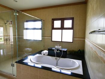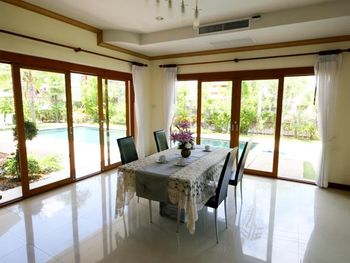 Не понравились правила. Номера с бытовой техникой, но чтобы ее подключить и получить столовые принадлежности нужно оставить депозит в 200 долларов. Попросили дополнительный к-т белья запросили 1200 в сутки.(моразм). Завтраки очень скудные. Каждый день одно и тоже. Местоположение отдаленное. На море возит шатл по расписанию,а пешком далековато если сходить вечером погулять на Сурин или Банг- Тао.