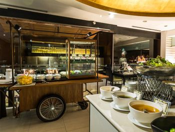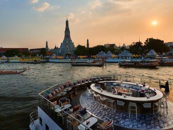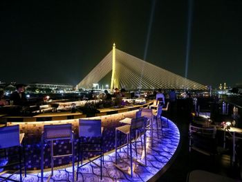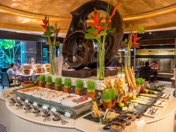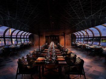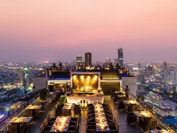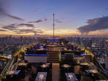 В баре Vertigo and Moon с панорамным видом предлагают широкий выбор блюд западной кухни. Гостям подают также фирменные блюда тайской и китайской кухни. В отеле Banyan Tree Bangkok организуют круизы по реке Чаупхрая с ужином.