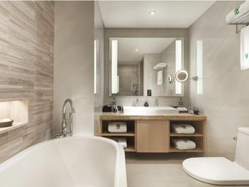 Номерной фонд откровенно уставший, но все очень ухоженное. Запрашивали хороший вид из окна - жили на 21-ом этаже с видом на соседнее здание. Номер помять не удалось. И самый большой минус - мы жили в клубном номере, при заселении выяснилось, что в связи с ограничениями после карантина, клубный лаунж не работает, обслуживания по клубной системе в номерах не предусмотрено, в бассейн можно попасть только по предварительной записи и только после 12-ти дня, напитки и закуски можно получить только у лобби. В таком случае теряется весь смысл клубного номера и стоимость получается совершенно неоправданная. Завтраки тоже тоже были не шведский стол, а а-ля кард, но об этом предупреждали заранее.