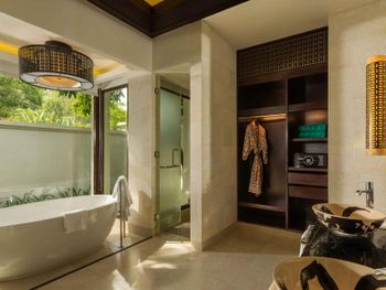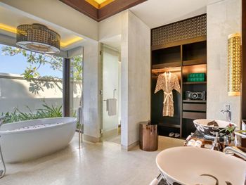 Очень комфортные, уютные виллы, уединенные, вокруг только природа, с одной стороны тропические горы - с другой море. (Соседей не видно). По территории все передвигаются на велосипедах, либо багги. Предоставили детский велосипед (5лет), есть вело кресла для малышей, также предоставили детскую коляску. Очень отзывчивый персонал, у каждой виллы есть свой хостес, что очень удобно. Завтраки потрясающие, огромное количество фруктов, фрешей...