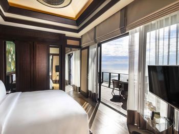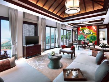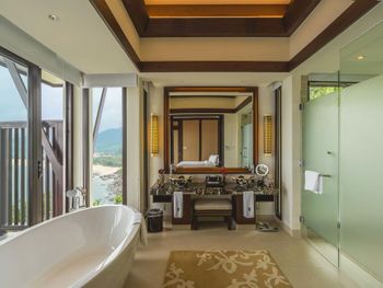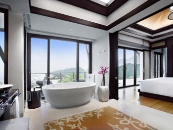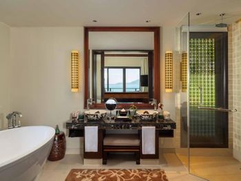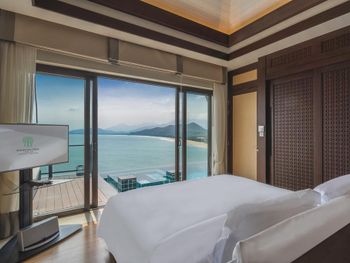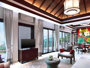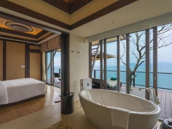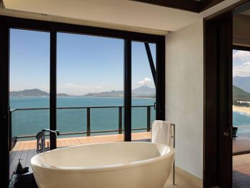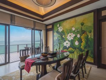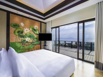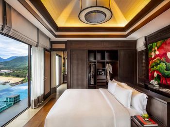 Surrounded by white sand beaches and magnificent mountains, the air-conditioned villas are decorated with elegant paintings and eco-friendly materials like bamboo. Villas come with a flat-screen TV, minibar and seating area. En suite bathrooms have a bathtub.