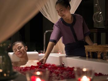 Daily buffet breakfast is served at The Water Court, while Saffron Restaurant specialises in Thai fusion cuisine. Italian and Mediterranean meals and drinks can be enjoyed at the beach-front Azura Restaurant.