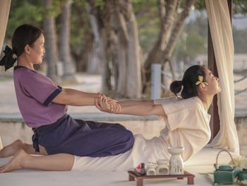 Курортный отель Banyan Tree Sanya расположен в заливе Лухэйтоу, в 10 минутах езды от пешеходной улицы Саньи. Поездка до железнодорожного вокзала Саньи займет 20 минут, а до аэропорта Санья-Феникс — 30 минут.