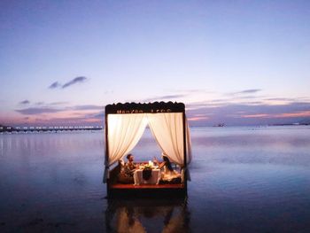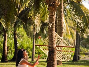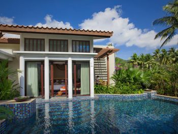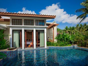 К услугам гостей роскошного курортного отеля Banyan Tree Sanya стильные виллы с собственным бассейном и тропический сад. В комплексе работает фитнес-центр, гости могут заказать спа-процедуры. На пляже есть беседки, где можно отдохнуть, а вечером заказать закуски и безалкогольные напитки и полюбоваться закатом. В местах общего пользования действует Wi-Fi.
