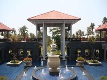 Хорошее расположение виллы со своим бассейном, рядом с прудом и морем. Полное уединение. Виллы уставшие. Пеосонал не говорит по-английски вообще. Завтраки прекрасные до 13 часов!!! Пляж чистый, море мелкое и серое. Территория красивая. Народу мало.