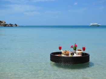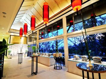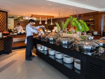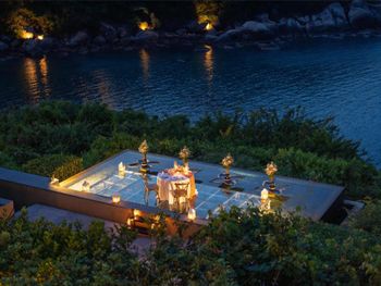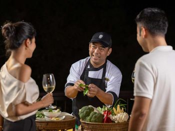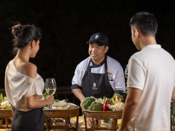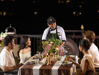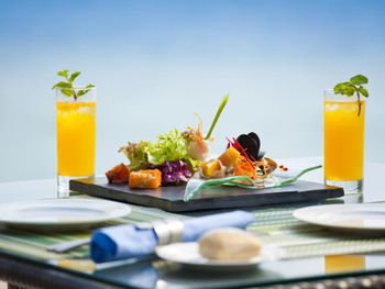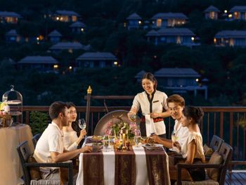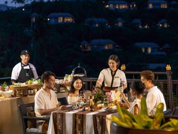 В ресторане The Edge подается завтрак «шведский стол», включающий различные блюда интернациональной кухни. В ресторане Saffron гостям предложат традиционные тайские блюда. Помимо этого, можно посетить лаундж Lobby, бар у бассейна Bar and Sands и пляжный ресторан-гриль комплекса Banyan Tree.