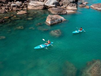 Непростой вход в море, много кораллов. Но на кайаке можно доплыть до песочного дна. Очень маленький спортзал!