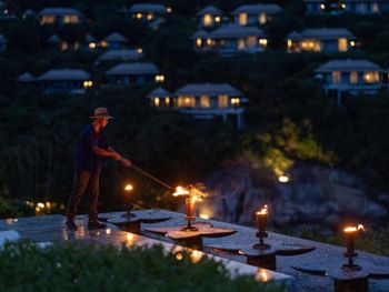 Курортный комплекс Banyan Tree Samui находится в 30 минутах езды от международного аэропорта Самуи. За 2 минуты на автомобиле можно доехать до пляжного клуба Republic, а за 10 минут — до живописных скал «Дедушка и Бабушка».