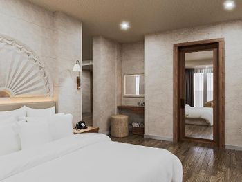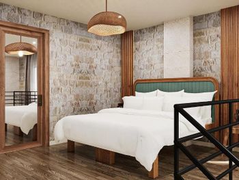Заказывал люкс одноуровневый,был заселен в двухуровневый. Ужасный проект номера: одно зеркало на втором этаже, нет гардероба, вещи некуда сложить, ужасные прикроватные тумбочки