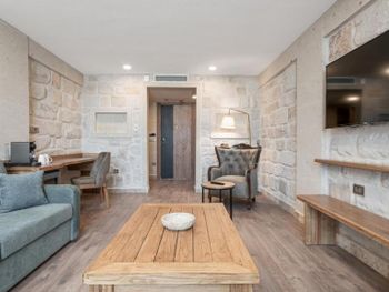 Двухэтажные номера, которые на первом этаже это по факту подвал, у вас есть выход на балкон и панорамное окно, но они на стену, все чистое новое (ну кроме балкона, там все в пыли), на первом этаже этого номера гостиная, а спальня и туалет на втором этаже. В целом все хорошо, но не всем будет удобно, короче на любителя. Ужин 27 евро с человека, но он не фонтан, стандартный набор, напитки за отдельную плату. Отель возле заправки, поэтому за кофе и водой можете ходить круглосуточно??? Про спа: сауна маленькая, хамам тоже, уличный бассейн весь в пыли и листьях, народу в наши дни 22-25.09 у бассейна днем мы не обнаружили. Парковка у отеля бесплатная. В целом за те 11000 рублей в сутки нормально.
