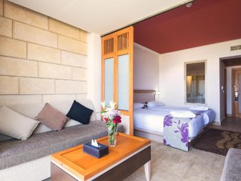Все номера, в том числе люксы, оформлены в современном стиле. В числе удобств телевизор с плоским экраном, балкон с видом на бассейн или море и собственная ванная комната с душем, феном и халатами.