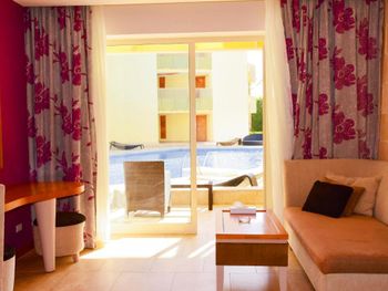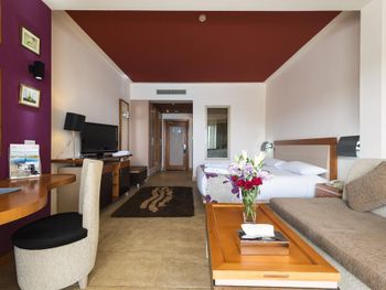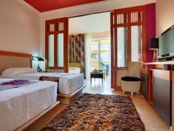 Все номера, в том числе люксы, оформлены в современном стиле. В числе удобств телевизор с плоским экраном, балкон с видом на бассейн или море и собственная ванная комната с душем, феном и халатами.