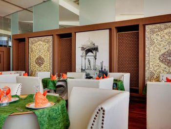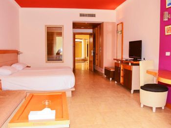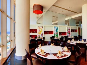 1. Еда не очень. Брошюра обещает изысканные блюда со всего мира, однако про качество этих блюд ничего не написано. В еде из чанов иногда попадаются остатки вчерашних блюд. Морепродукты обычно приготовлены отвратительно, курица пересушена (актуально для шведского стола, пробовать в а-ля карт не рискнул). Из говядины обычно готовят вкусно (кроме колбас и сосисок). Салаты выглядят жутковато. На завтраке ежедневно абсолютно нечеловеческие очереди за омлетом (кроме которого завтракать практически нечем). Никто не отравился и на том спасибо. 2. Алкоголь не очень Крепкие напитки пахнут инвалидностью и смертью, вино - из пакетов а-ля "Каждый день". Пиво нормальное, но разливают из бутылок в одноразовые мензурки 150мл. Взять бутылку - 4 доллара. Выпить из стеклянной посуды можно только в лобби баре. Любимая история про посуду: В первый вечер попросил у бармена пару бокалов для шампанского, спокойно отменить в номере начало отпуска. Мистер бармен посмотрел как на дурачка и очень строго сообщил что бокалы нужно вернуть до полуночи. 3. Сервис не очень Чтобы заслужить улыбку в свой адрес со стороны персонала я даже не знаю что нужно сделать (ходят угрюмые, иногда расцветают от чаевых, но и это не всегда помогает). Вежливого способа отвязаться от отельных продавцов всевозможных услуг кажется не существует. Спасение - приватные лежаки делюкс-номеров, но спустя неделю массажисты и экскурсоводы начали атаковать и их. Отдельная история - бронирование лежаков и столов персоналом. Приходишь в 6 утра на пляж - на половине лежаков уже лежит разный мусор, типа занято. В ресторане аналогично. Если оставляешь чаевые - пожалуйста за лучший стол, иначе можешь быть с позором изгнан. 4. Отель устал В первые дни на это не обращаешь внимания, потому что слишком вокруг красиво, но к концу отпуска каждый скол на плитке начинает раздражать. Кондиционер работает еле-еле, в душе горячей воды надо ждать минут 5 (на некоторых кранах перепутаны обозначения горячая/теплая.