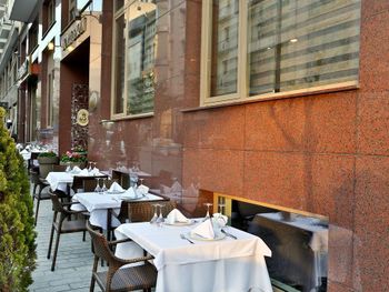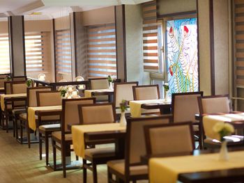ресторан с окнами на улицу. Четкая работа персонала. уборка номеров