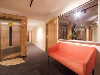 один маленький лифт. может быть не удобно кому тяжело подниматься пешком.