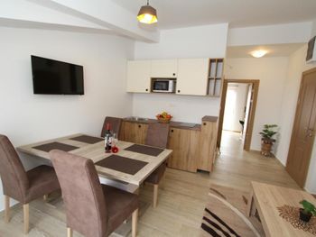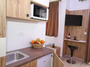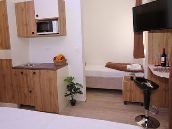 Мне не понравилось, какую мне приготовили кровать) Я приехала в Будву ночным рейсом, очень рано. До заселения ещё оставалось прилично времени. Я пришла, оставила вещи, уточнила, смогу ли я заселиться раньше? Мне сказали нет, я ушла по своим делам. Вернулась в обед, когда по времени все номера уже были подготовлены. Номер я заказывала с одной большой кроватью, но мне почему-то застелили твин))) Горничная почему-то решила, что если я заселяюсь одна, то мне можно застелить и так... Это меня неприятно задело. К тому же, в номере не было теплого одеяла, а я могу уснуть только на двуспальной кровати под большим одеялом. Я привела себя в порядок с дороги, и решила ещё прогуляться по городу. Уходя, я обратилась на ресепшен, рассказала о проблеме, попросила перестелить мне твин в дабл, согласно оплате и добавить большое одеяло. Вернувшись, я обнаружила, что постель мне перестелили, но как попало, на отвали. Одеяло действительно принесли, бросили на постель, но односпальное и тонкое))) На двуспальную кровать)) Больше спорить уже не стала, не было ни сил, ни желания. Кое-как я смогла уснуть, мерзла, у меня гонартроз коленей, они ноют, не дают уснуть, если мне холодно, некомфортно. В итоге - не выспалась, остался неприятный осадок. Почему-то сотрудница вдруг решила, что ей и так сойдёт) Ещё в номере совсем отсутствуют туалетные принадлежности - не ожидала, что элементарной зубной щётки не будет) По мне так вместо кухни лучше были бы туалетные принадлежности и чай, кофе, сахар рядом с чайником. Когда падаешь в номер без сил, уже не до походов в магазин за зубными щётками, шампунем и чаем) Ещё из минусов - никаких указателей со стороны улицы, с трудом нашла. Геолокация крутила рядом, а по факту не видно с дороги, расположение весьма не очевидное, как будто нарочно спрятались среди соседних зданий