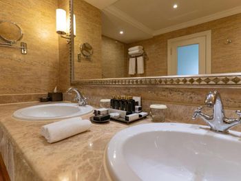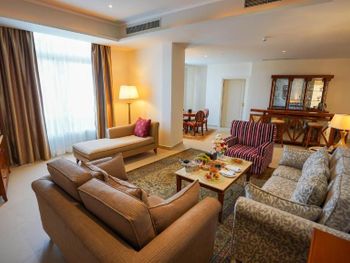 В распоряжении гостей просторные, роскошно обставленные номера c кондиционером, телевизором с плоским экраном и спутниковыми каналами, собственной ванной комнатой с ванной или душем, мини-баром и прочими роскошными услугами и удобствами.
