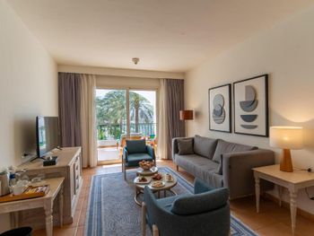 Постоянные проблемы с персоналом: то мини бар не заполнят,то в ресторане не дождёшься напитков ,то хамовитые шуточки от барменов. Придёшь на пляж, мало того что, все жезлонги заняты всегда полотенцами ,так ещё и местный торговец Мухамед(Пушкин)навязывает постоянно свой товар не давая отдохнуть. Пантон на море раздолбанный, лестницы поломанные ,вылезти из моря невозможно.