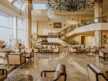 Насладитесь великолепным сервисом в Baron Resort Sharm El SheikhСтильный, элегантный и престижный 5-звездочный курортный отель Baron Sharm El Sheikh находится в Шарм-эль-Шейхе. К услугам гостей великолепный частный пляж с белым песком протяженностью 600 метров, бассейн в виде лагуны, платформа для дайвинга и сноркелинга длиной 145 метров, 9 ресторанов и баров, а также плавательный бассейн олимпийского размера с пресной водой (подогревается в зимний период). Среди удобств и услуг — частично закрытая гидромассажная ванна только для взрослых с морской водой, детский бассейн и бесплатный трансфер по вечерам (раз в день на автобусе) до площади Сохо.