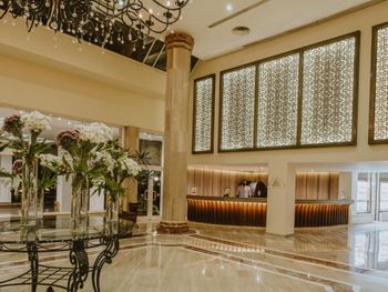 Заселение было вечером, дали ужасный номер с односпальной кроватью и окнами в строну технических помещений, пришлось возвращаться с ребенком, просить назад деньги, в итоге нашли получше, но номера все очень старые, запах ужасный, еда посредственная, обслуживание мрак.