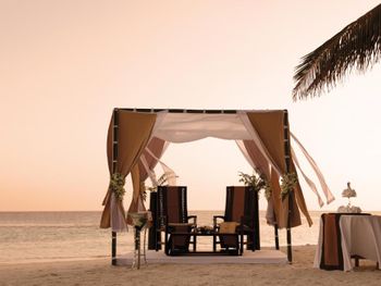 В 3 изысканных ресторанах готовят блюда из морепродуктов и деликатесы азиатской кухни. По запросу для гостей накрывают частный ужин на вилле, уединенном песчаном берегу или на веранде над лагуной. В баре Sails под пальмовыми деревьями в течение всего дня подают разнообразные напитки. В сигарном лаундже можно заказать вечерний коктейль и полюбоваться видом на море.